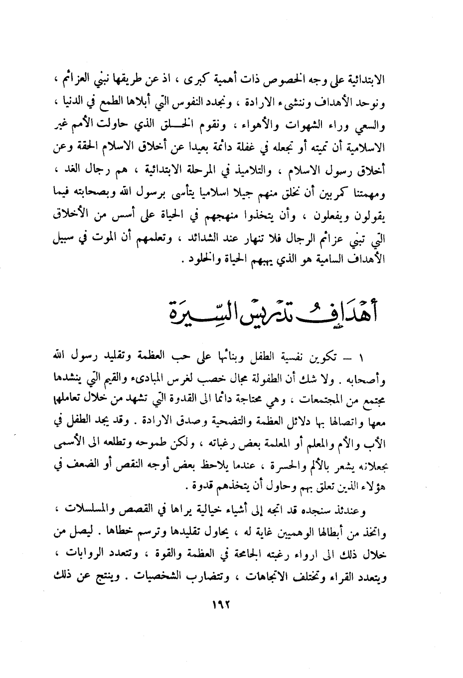 الابتدائية على وجه الخصوص ذات أهمية كبرى، إذ عن طريقها نبني العزائم، ونوحد الأهداف وننشئ الإرادة، ونجدد النفوس التي أبلاها الطمع في الدنيا، والسعي وراء الشهوات والأهواء، ونقوم الخلق الذي حاولت الأمم غير الإسلامية أن تميته أو تجعله في غفلة دائمة بعيدا عن أخلاق الإسلام الحقة, وعن أخلاق رسول الإسلام، والتلاميذ في المرحلة الابتدائية، هم رجال الغد، ومهمتنا كمربين أن نخلق منهم جيلا إسلاميا يتأسى برسول الله وبصحابته فيما يقولون ويفعلون، وأن يتخذوا منهجهم في الحياة على أسس من الأخلاق التي تبني عزائم الرجال فلا تنهار عند الشدائد، وتعلمهم أن الموت في سبيل الأهداف السامية هو الذي يهبهم الحياة والخلود.