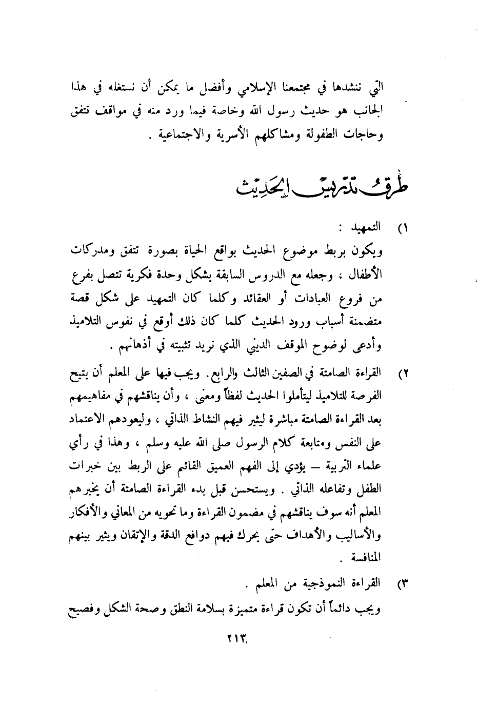 التي تنشدها في مجتمعنا الإسلامي وأفضل ما يمكن أن نستغله في هذا الجانب هو حديث رسول الله, وخاصة فيما ورد منه في مواقف تتفق وحاجات الطفولة ومشاكلهم الأسرية والاجتماعية.