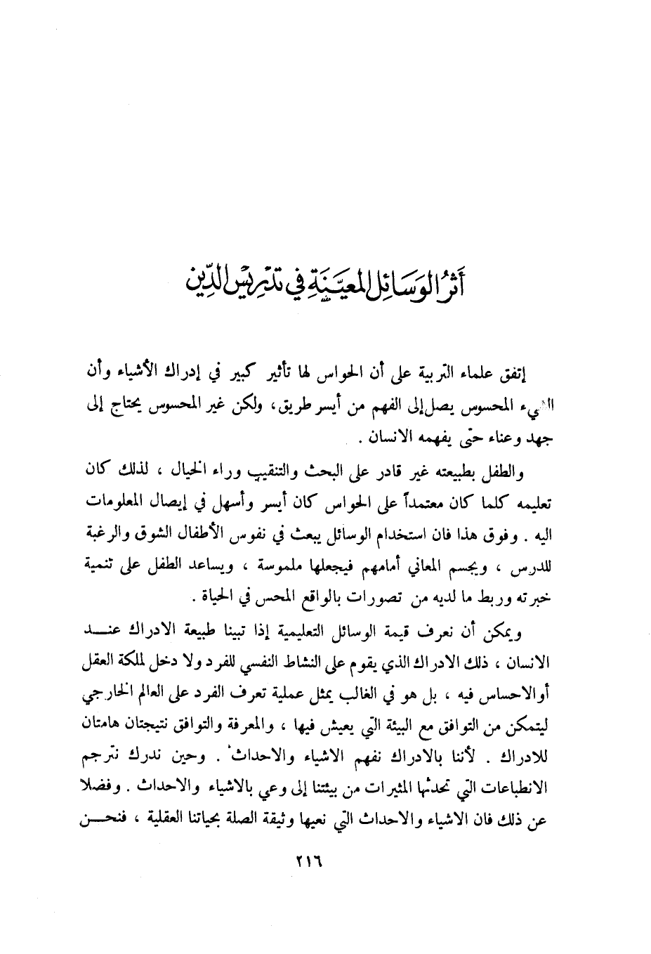 اتفق علماء التربية على أن الحواس لها تأثير كبير في إدراك الأشياء, وأن الشيء المحسوس يصل إلى الفهم من أيسر طريق، ولكن غير المحسوس يحتاج إلى جهد وعناء حتى يفهمه الإنسان.