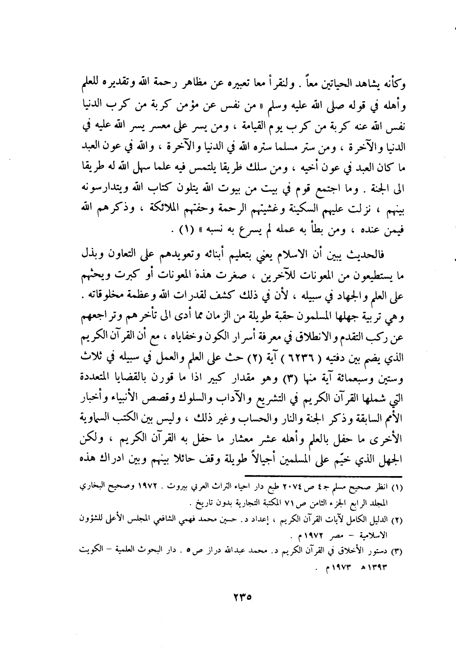 3 دستور الأخلاق في القرآن الكريم د. محمد عبد الله دراز ص5. دار البحوث العلمية - الكويت 1393هـ 1973م.