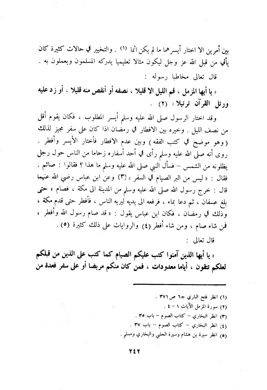 {يَا أَيُّهَا الْمُزَّمِّلُ، قُمِ اللَّيْلَ إِلَّا قَلِيلًا، نِصْفَهُ أَوِ انْقُصْ مِنْهُ قَلِيلًا، أَوْ زِدْ عَلَيْهِ وَرَتِّلِ الْقُرْآنَ تَرْتِيلًا} 2.