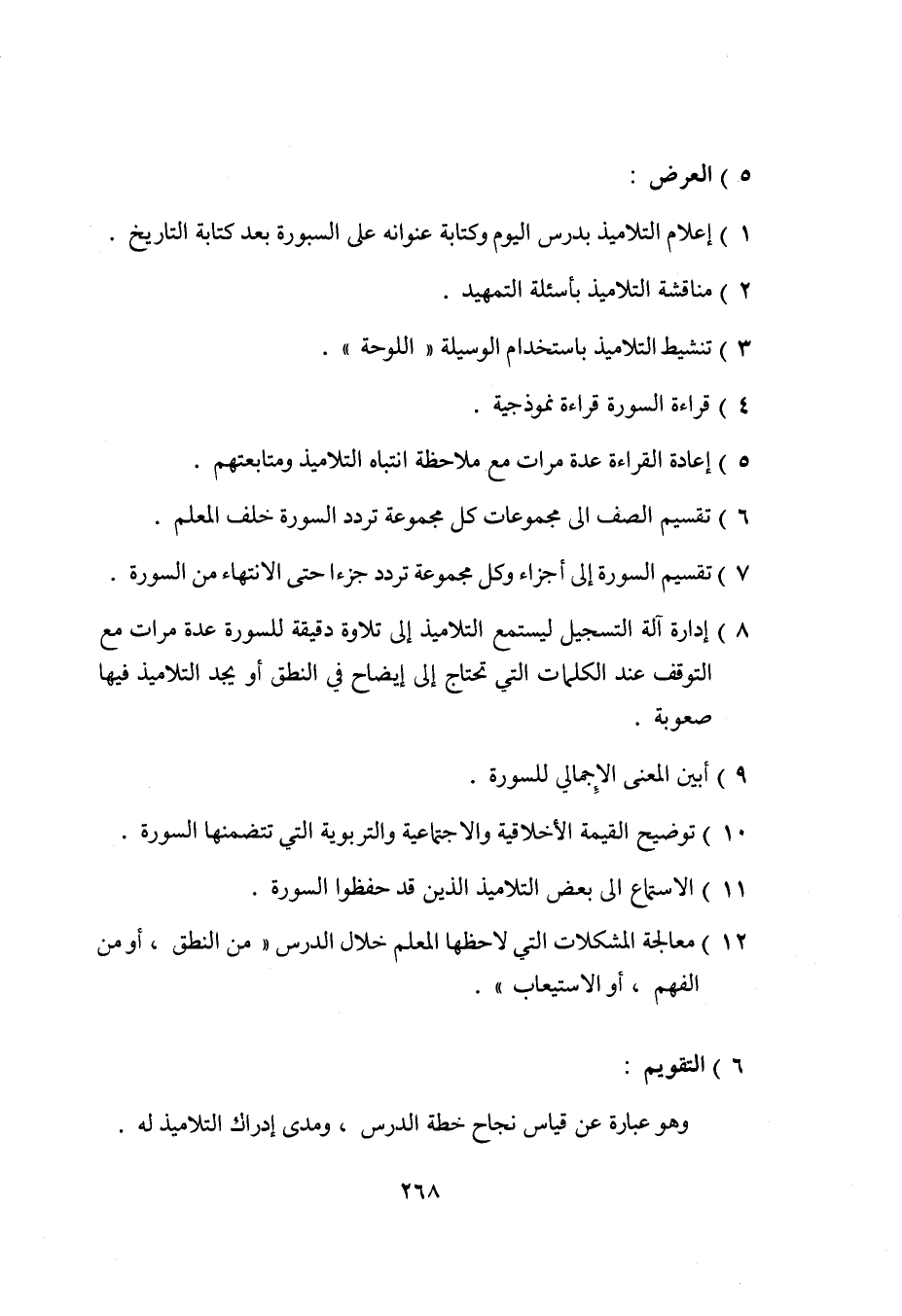 8- إدارة آلة التسجيل ليستمع التلاميذ إلى تلاوة دقيقة للسورة عدة مرات مع التوقف عند الكلمات التي تحتاج إلى إيضاح في النطق, أو يجد التلاميذ فيها صعوبة.