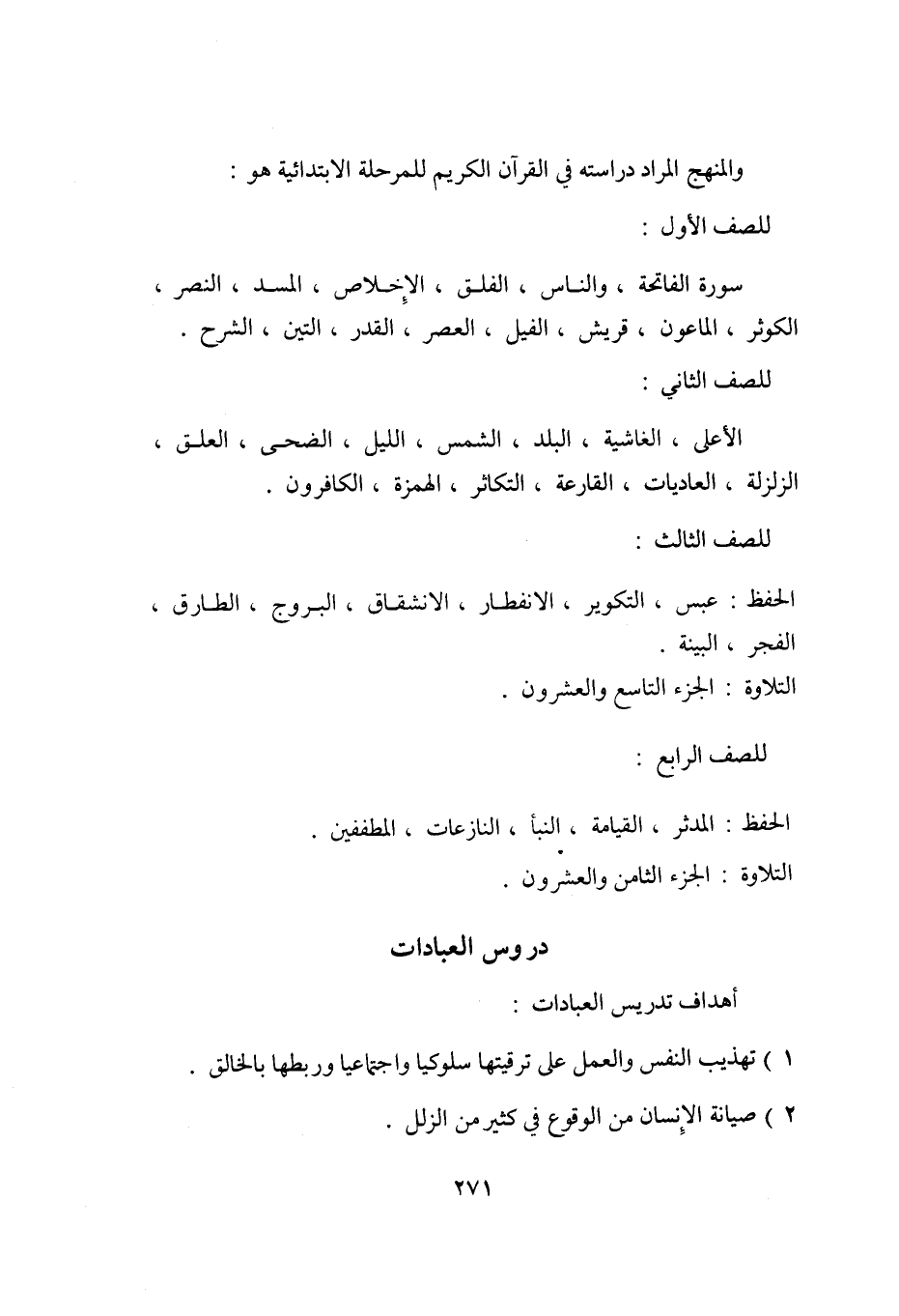 والمنهج المراد دراسته في القرآن الكريم للمرحلة الابتدائية هو: