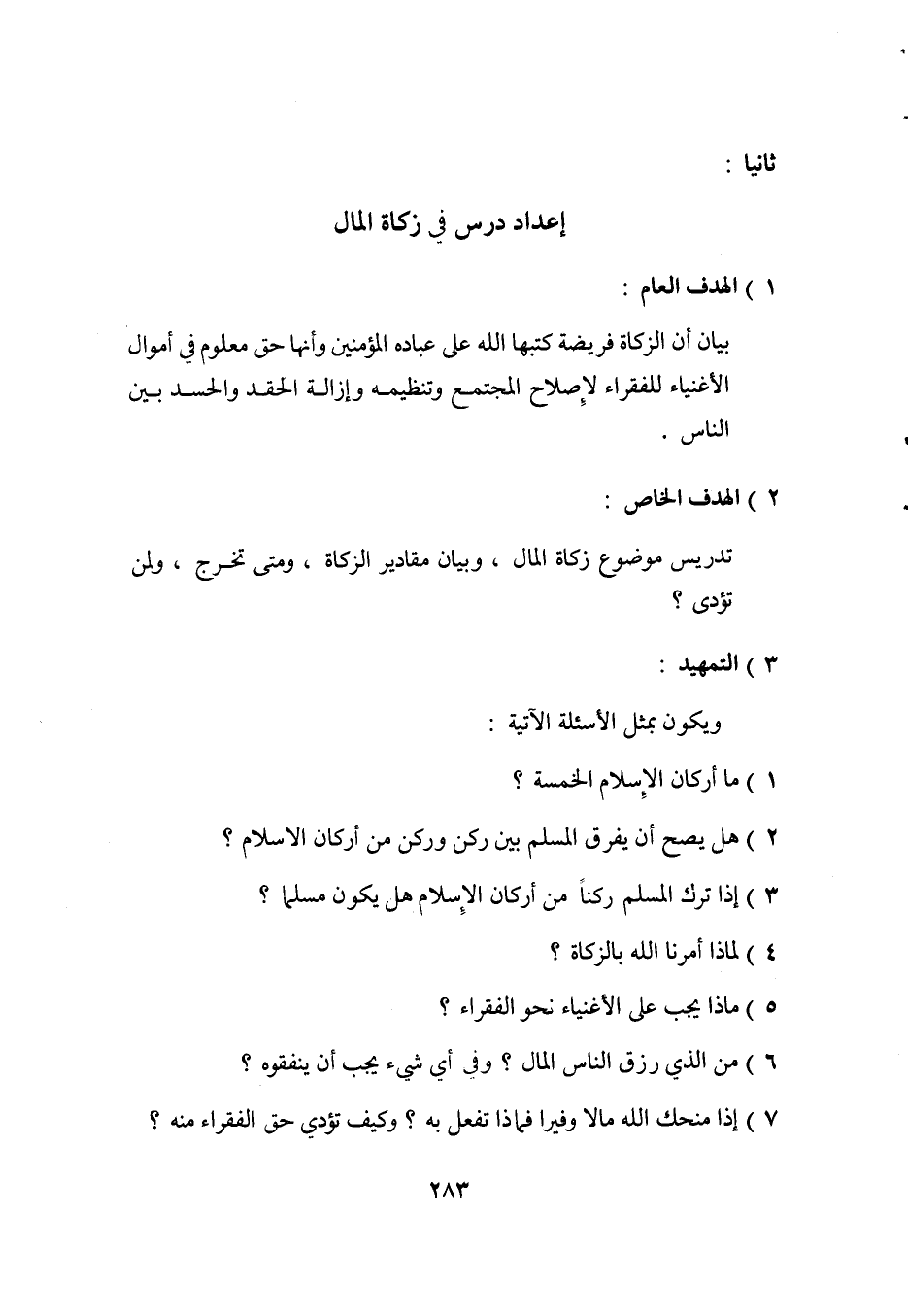 تدريس موضوع زكاة المال، وبيان مقادير الزكاة، ومتى تخرج، ولمن تؤدى؟