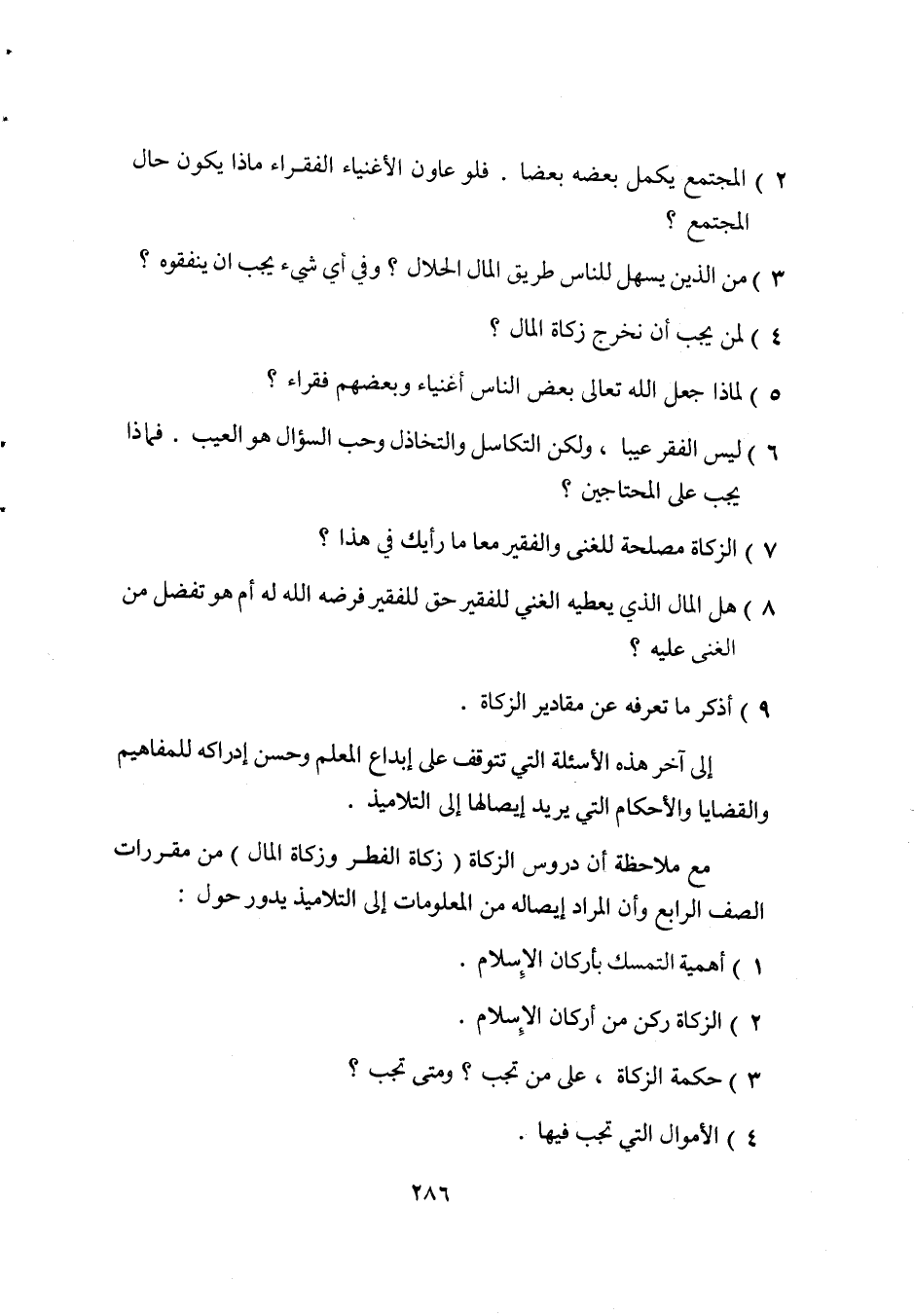 مع ملاحظة أن دروس الزكاة "زكاة الفطر وزكاة المال" من مقررات الصف الرابع, وأن المراد إيصاله من المعلومات إلى التلاميذ يدور حول: