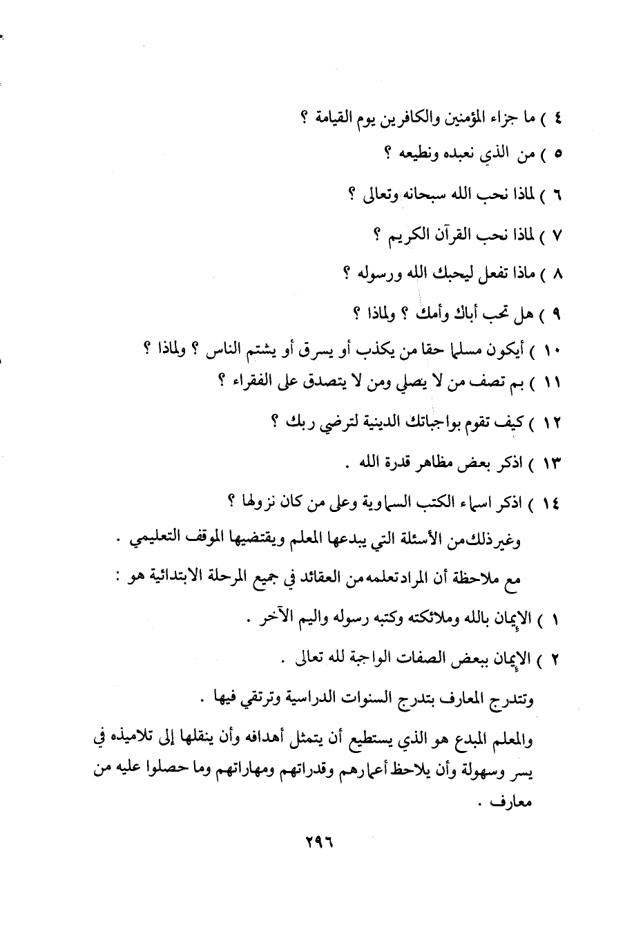 مع ملاحظة أن المراد تعلمه من العقائد في جميع المرحلة الابتدائية هو: