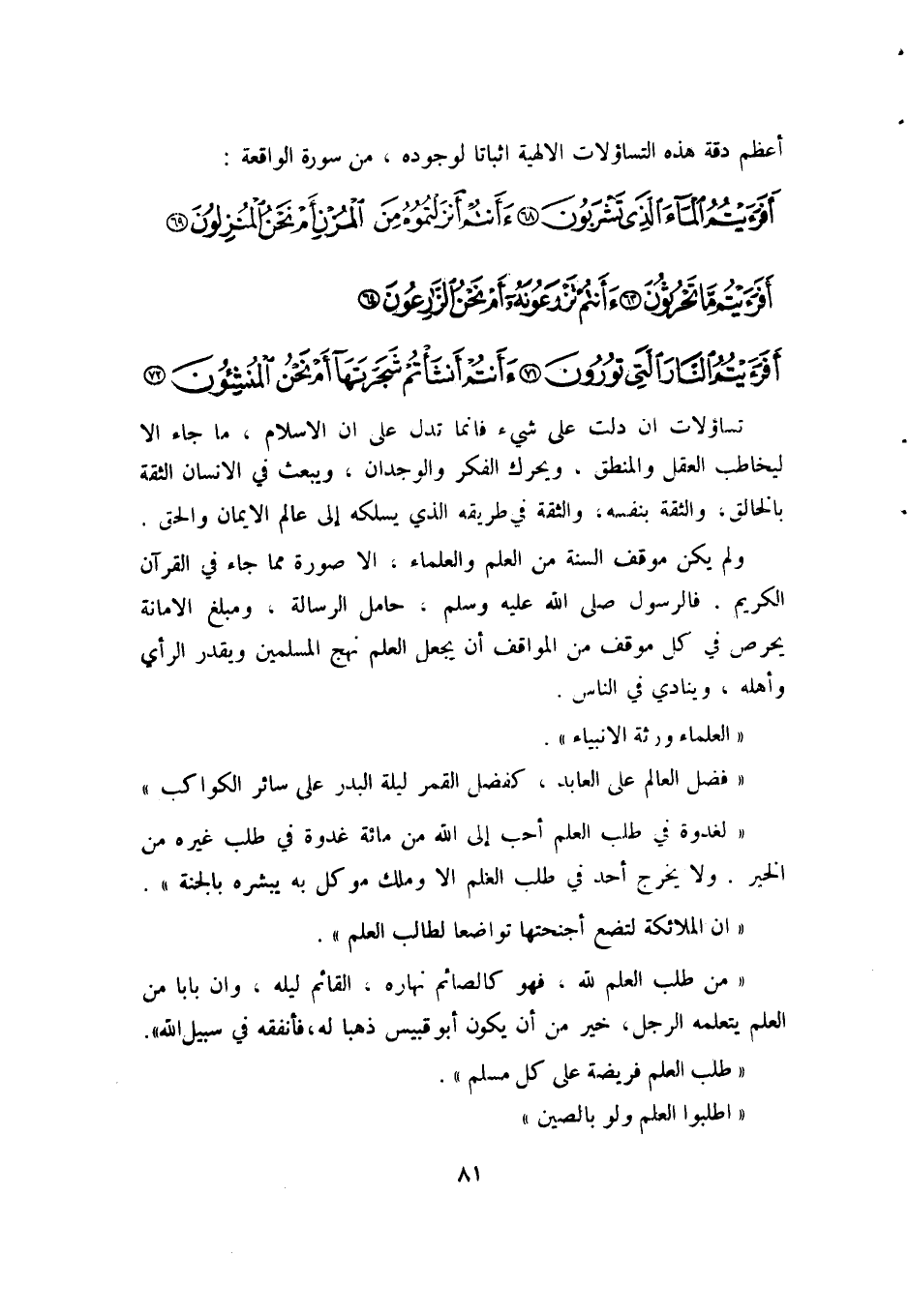 "إن الملائكة لتضع أجنحتها تواضعا لطالب العلم".