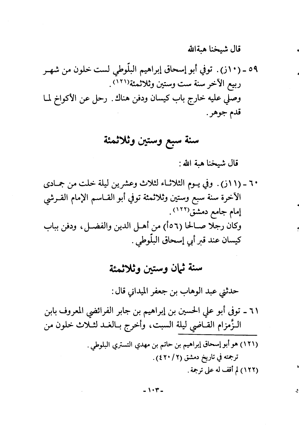 60 - (11 ز) وَفِي يَوْم الثُّلَاثَاء لثلاث وَعشْرين لَيْلَة خلت من جُمَادَى الْآخِرَة سنة سبع وَسِتِّينَ وثلاثمئة توفّي أَبُو الْقَاسِم الامام الْقرشِي امام جَامع دمشق