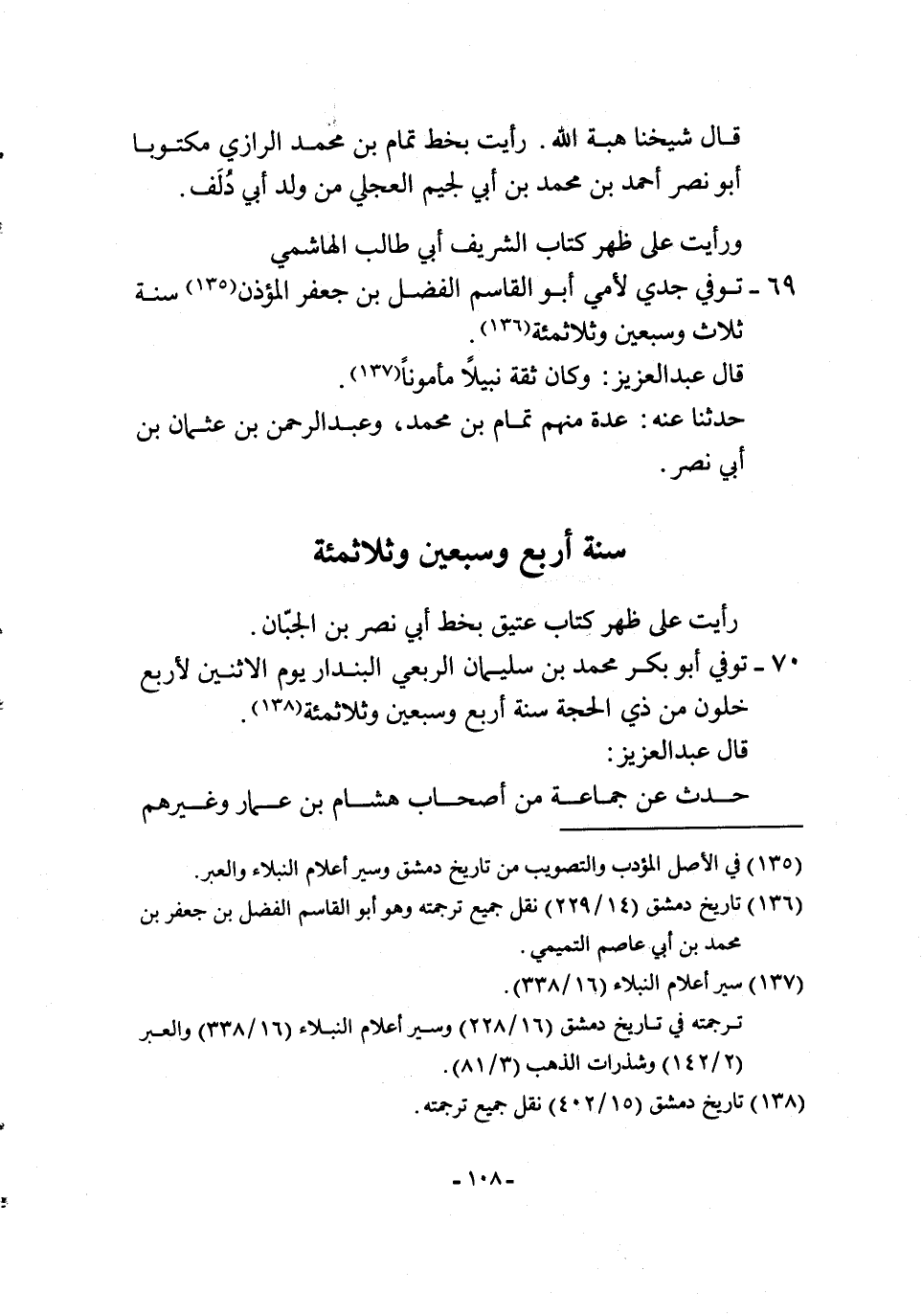 69 - توفّي جدي لأمي أَبُو الْقَاسِم الْفضل بن جَعْفَر الْمُؤَذّن سنة ثَلَاث وَسبعين وثلاثمئة