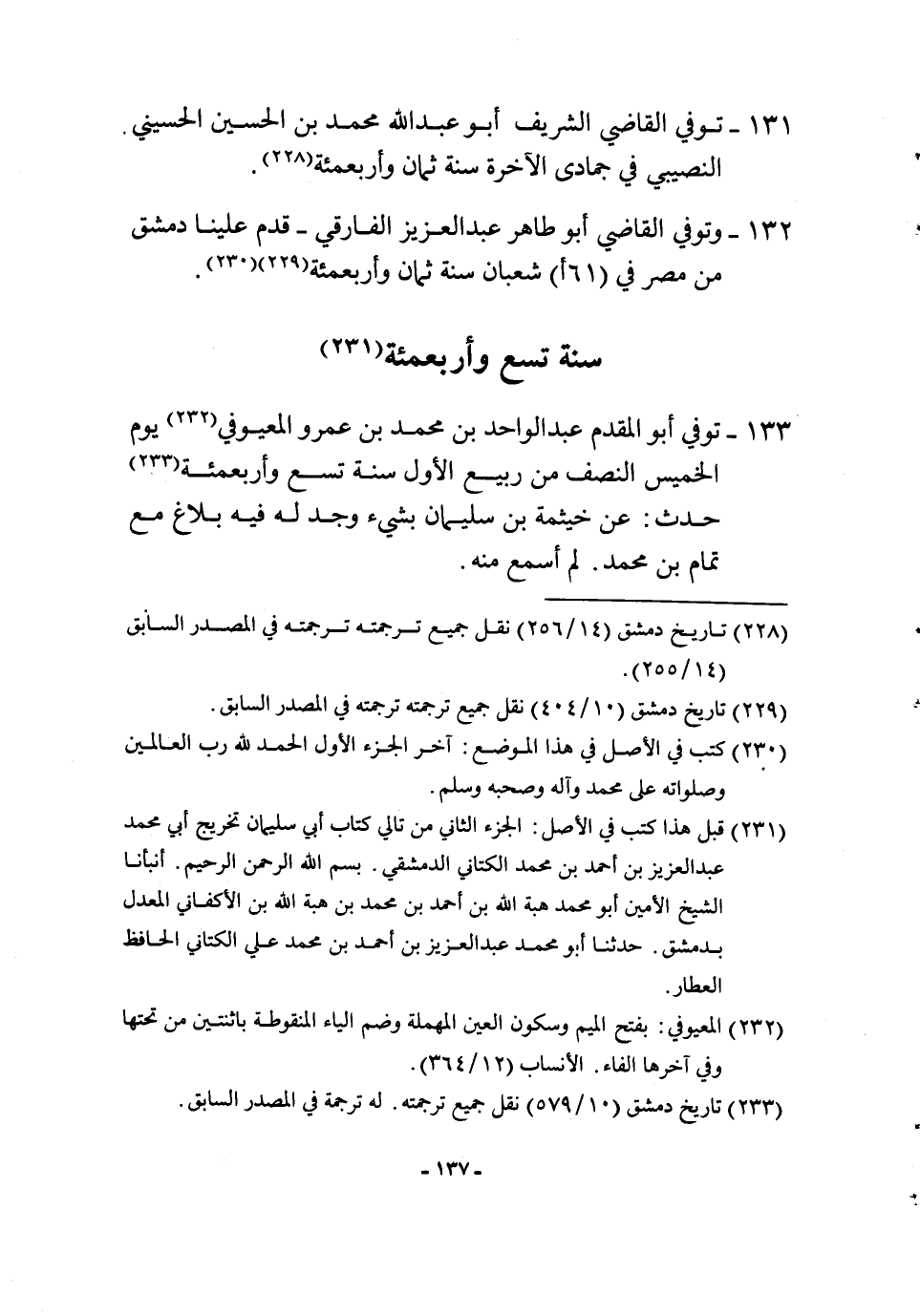 131 - توفّي القَاضِي الشريف أَبُو عبد الله مُحَمَّد بن الْحُسَيْن الْحُسَيْنِي النصيبي فِي جُمَادَى الْآخِرَة سنة ثَمَان وأربعمئة