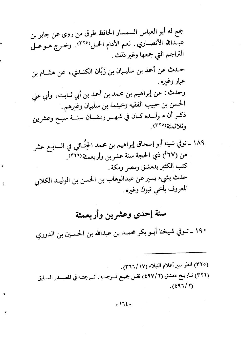 189 - توفّي شَيخنَا أَبُو إِسْحَاق إِبْرَاهِيم بن مُحَمَّد الحنائي فِي السَّابِع عشر من (67 أ) ذِي الْحجَّة سنة عشْرين وأربعمئة كتب الْكثير بِدِمَشْق ومصر وَمَكَّة