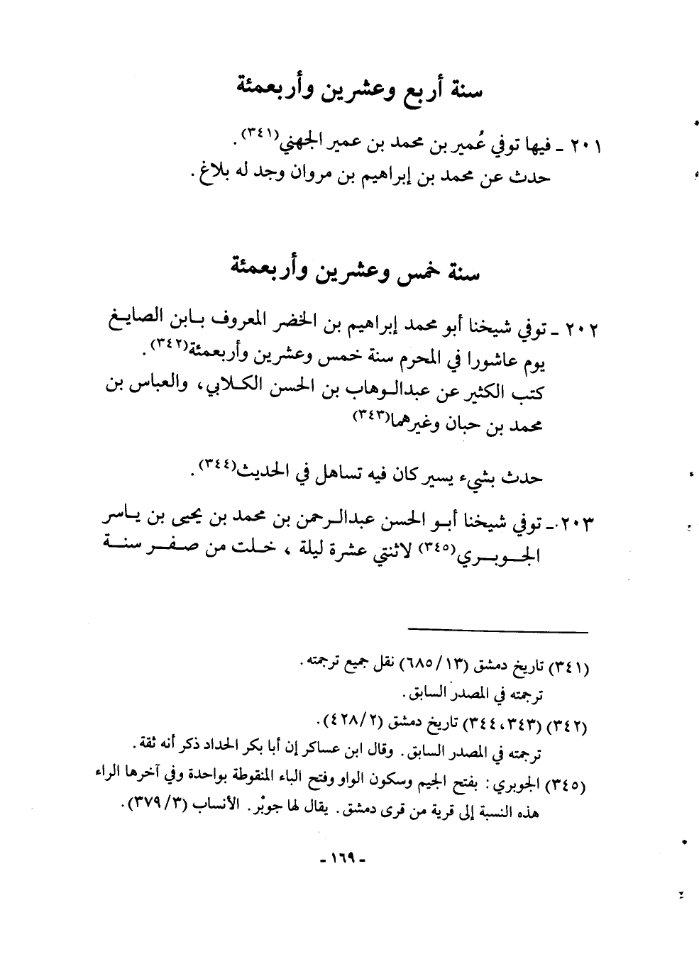 202 - توفّي شَيخنَا أَبُو مُحَمَّد إِبْرَاهِيم بن الْخضر الْمَعْرُوف بِابْن الصايغ يَوْم عاشورا فِي الْمحرم سنة خمس وَعشْرين وأربعمئة