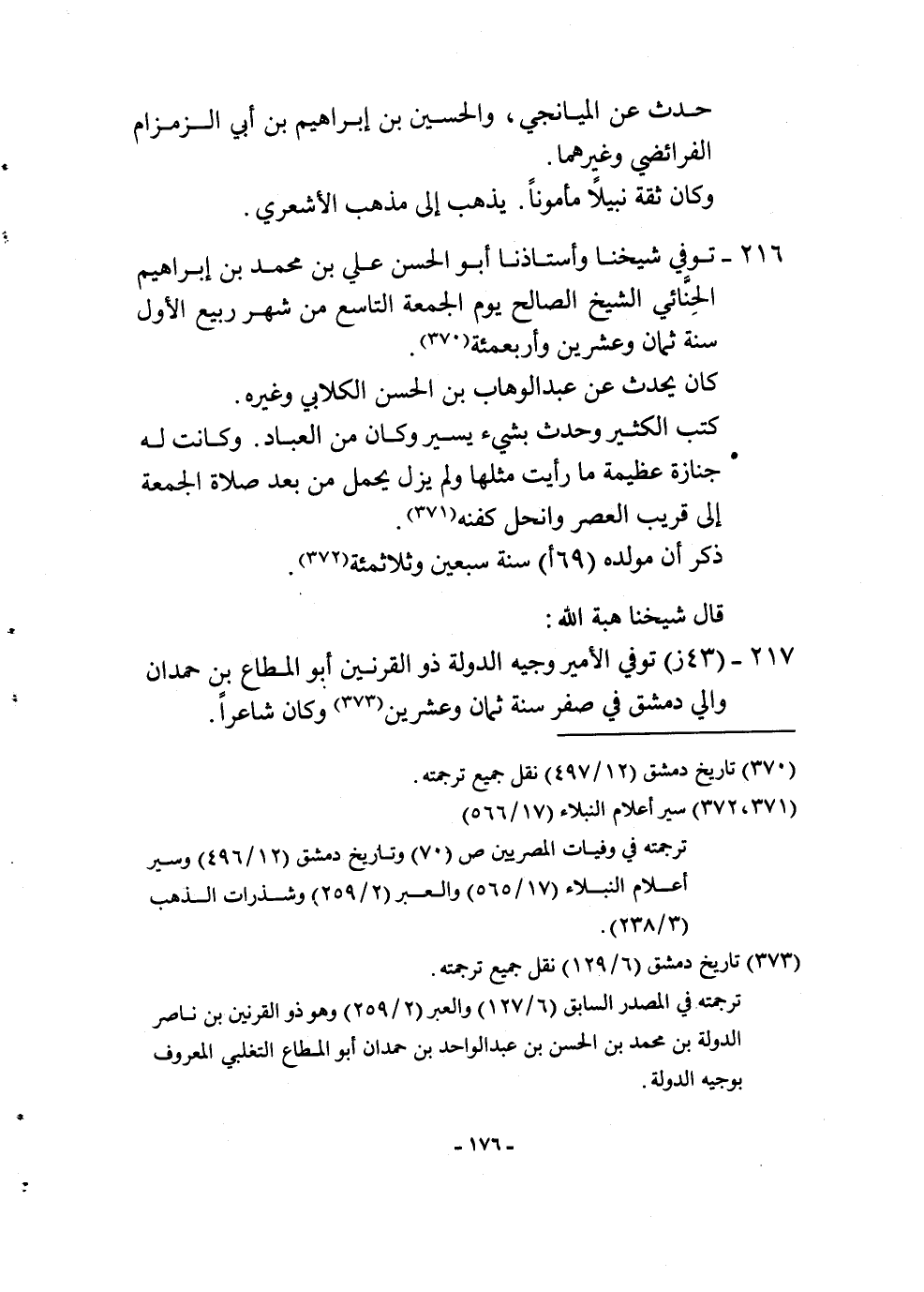 217 - (43 ز) توفّي الْأَمِير وجيه الدولة ذُو القرنين أَبُو المطاع بن حمدَان وَالِي دمشق فِي صفر سنة ثَمَان وَعشْرين وَكَانَ شَاعِرًا