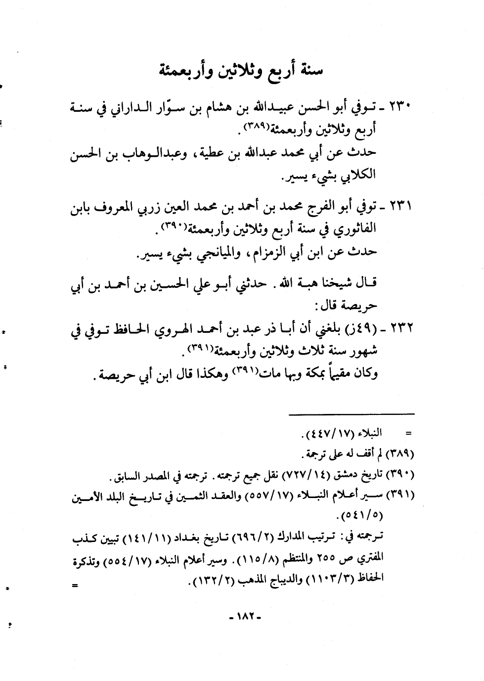 230 - توفّي أَبُو الْحسن عبيد الله بن هِشَام بن سوار الدَّارَانِي فِي سنة أَربع وَثَلَاثِينَ وأربعمئة