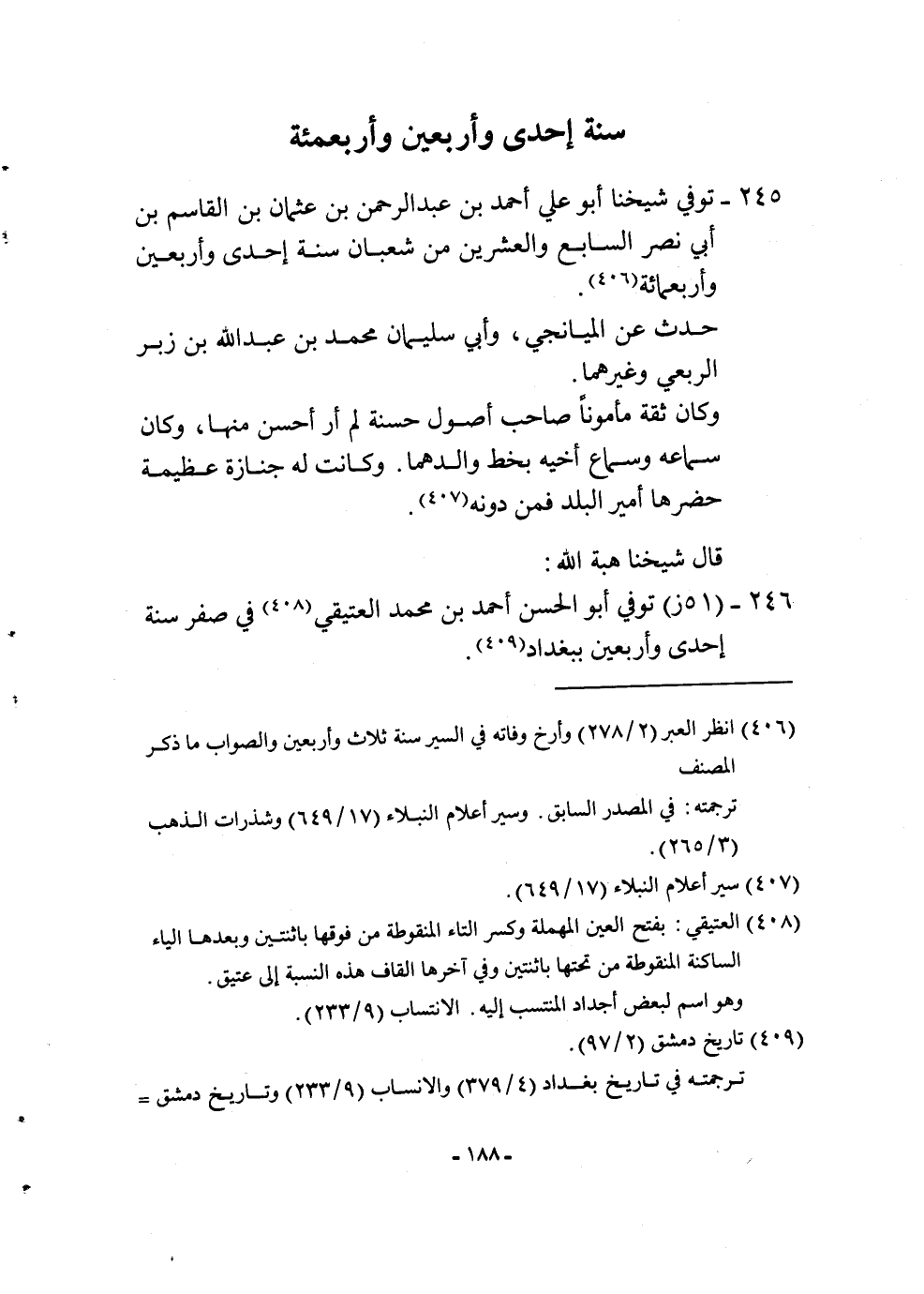 246 - (51 ز) توفّي أَبُو الْحسن أَحْمد بن مُحَمَّد العتيقي فِي صفر سنة إِحْدَى وَأَرْبَعين بِبَغْدَاد