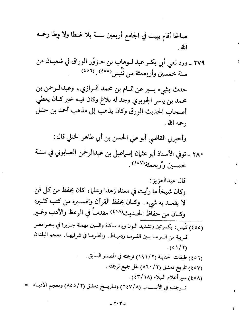 279 - ورد نعي أبي بكر عبد الْوَهَّاب بن حزور الْوراق فِي شعْبَان من سنة خمسين وأربعمئة من تنيس