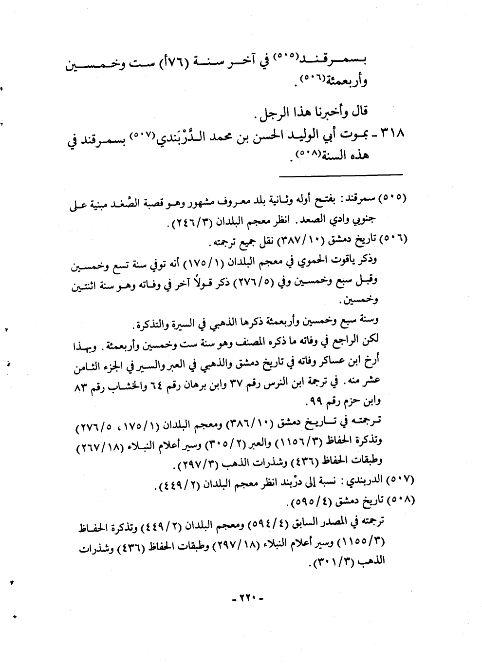 318 - بِمَوْت أبي الْوَلِيد الْحسن بن مُحَمَّد الدربندي بسمرقند فِي هَذِه السّنة