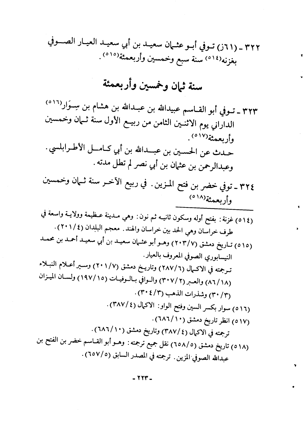 323 - توفّي أَبُو الْقَاسِم عبيد الله بن عبد الله بن هِشَام بن سوار الدَّارَانِي يَوْم الْإِثْنَيْنِ الثَّامِن من ربيع الأول سنة ثَمَان وَخمسين وأربعمئة