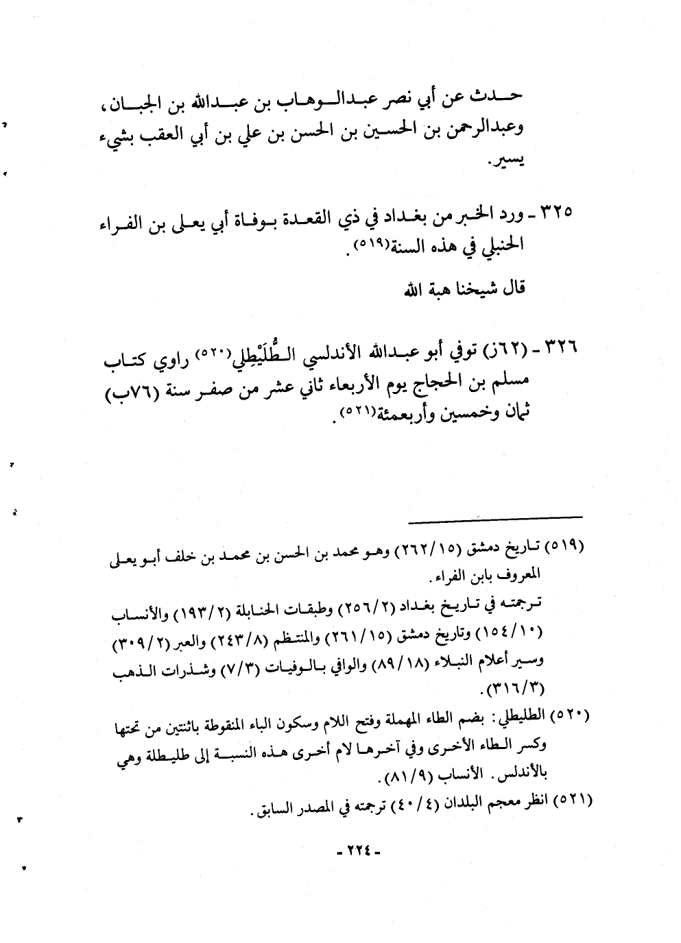 326 - (62 ز) توفّي أَبُو عبد الله الأندلسي الطليطلي رَاوِي كتاب مُسلم بن الْحجَّاج يَوْم الْأَرْبَعَاء ثَانِي عشر من صفر سنة (76 ب) ثَمَان وَخمسين وأربعمئة