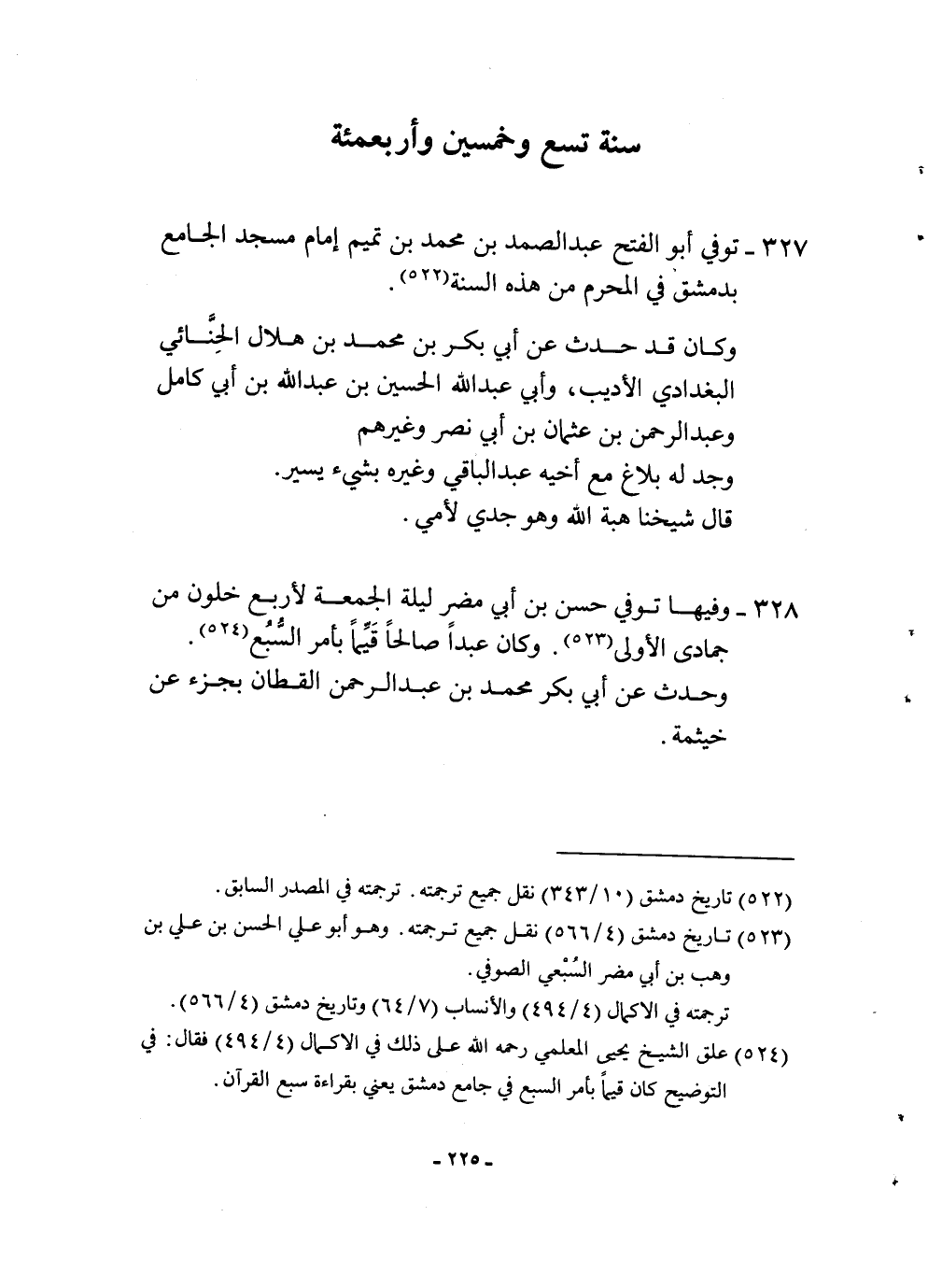 327 - توفّي أَبُو الْفَتْح عبد الصَّمد بن مُحَمَّد بن تَمِيم إِمَام مَسْجِد الْجَامِع بِدِمَشْق فِي الْمحرم من هَذِه السّنة