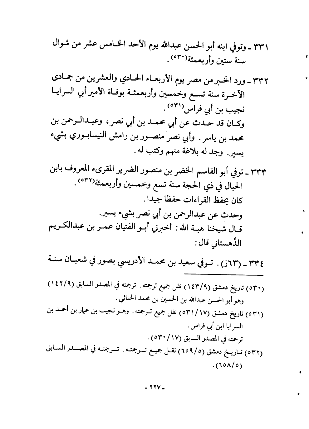 334 - (63 ز) توفّي سعيد بن مُحَمَّد الإدريسي بصور فِي شعْبَان سنة تسع وخمسينوأربعمئة