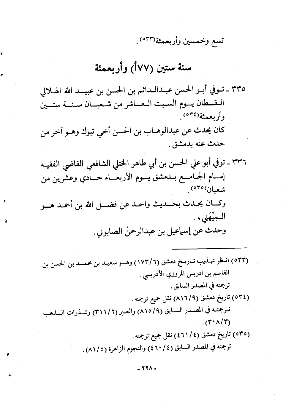 335 - توفّي أبوالحسن عبد الدَّائِم بن الْحسن بن عبيد الله الْهِلَالِي الْقطَّان يَوْم السبت الْعَاشِر من شعْبَان سنة سِتِّينَ وأربعمئة