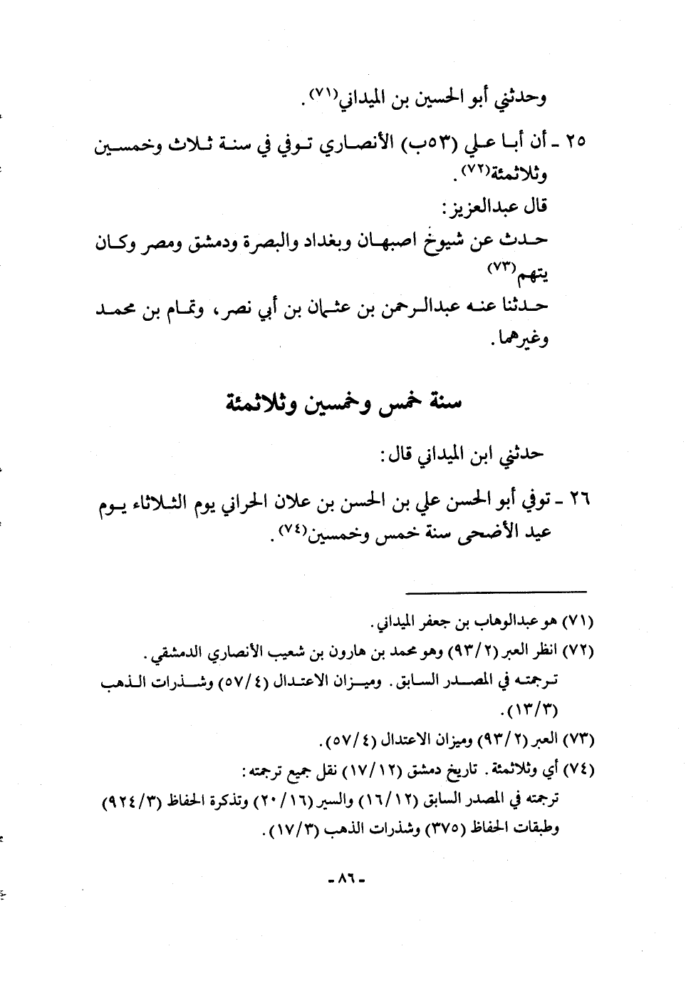 26 - توفّي أَبُو الْحسن عَليّ بن الْحسن بن عَلان الْحَرَّانِي يَوْم الثُّلَاثَاء يَوْم عيد الْأَضْحَى سنة خمس وَخمسين