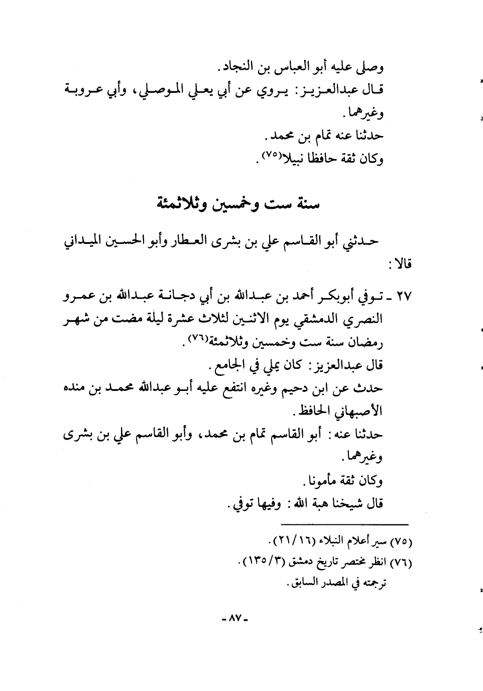 27 - توفّي أَبُو بكر أَحْمد بن عبد الله بن أبي دُجَانَة عبد الله بن عَمْرو النصري الدِّمَشْقِي يَوْم الْإِثْنَيْنِ لثلاث عشرَة لَيْلَة مَضَت من شهر رَمَضَان سنة سِتّ وَخمسين وثلاثمئة