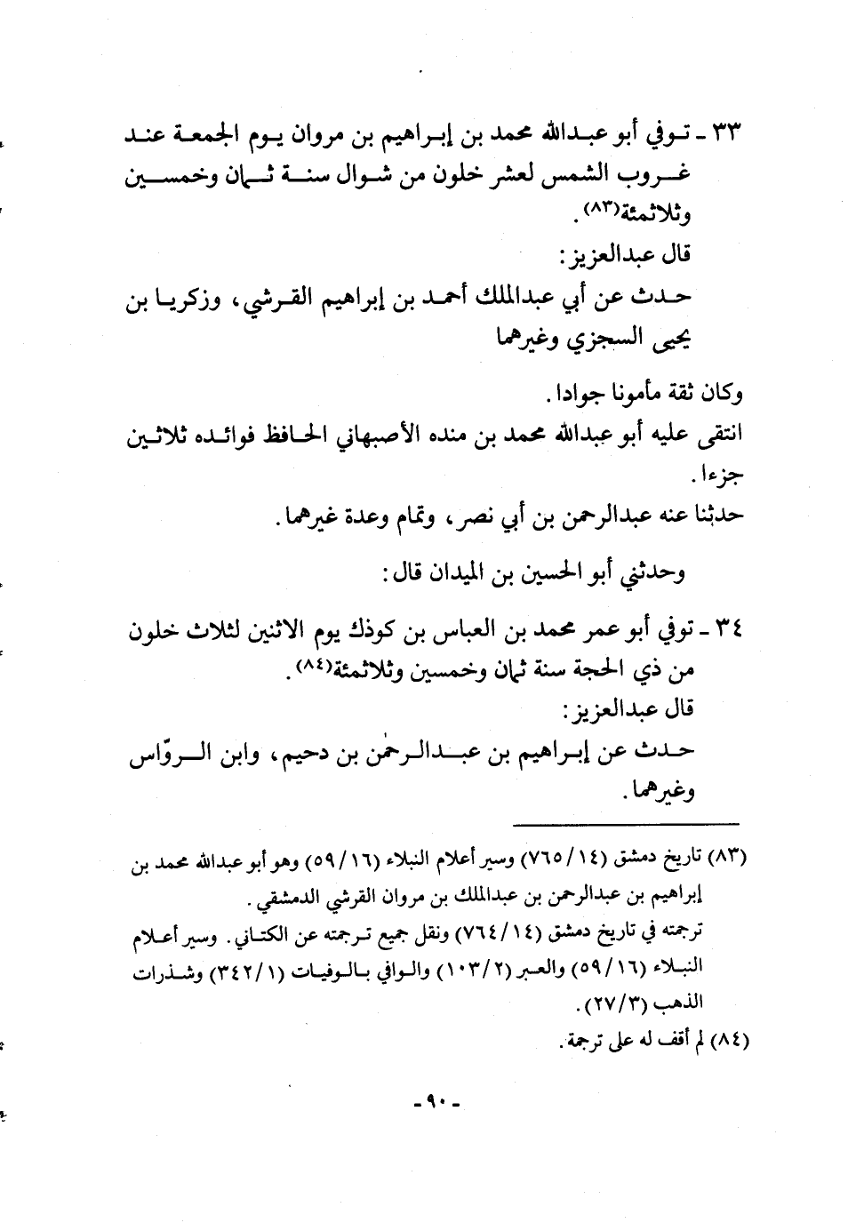 33 - توفّي أَبُو عبد الله مُحَمَّد بن إِبْرَاهِيم بن مَرْوَان يَوْم الْجُمُعَة عِنْد غرُوب الشَّمْس لعشر خلون من شَوَّال سنة ثَمَان وَخمسين وثلاثمئة