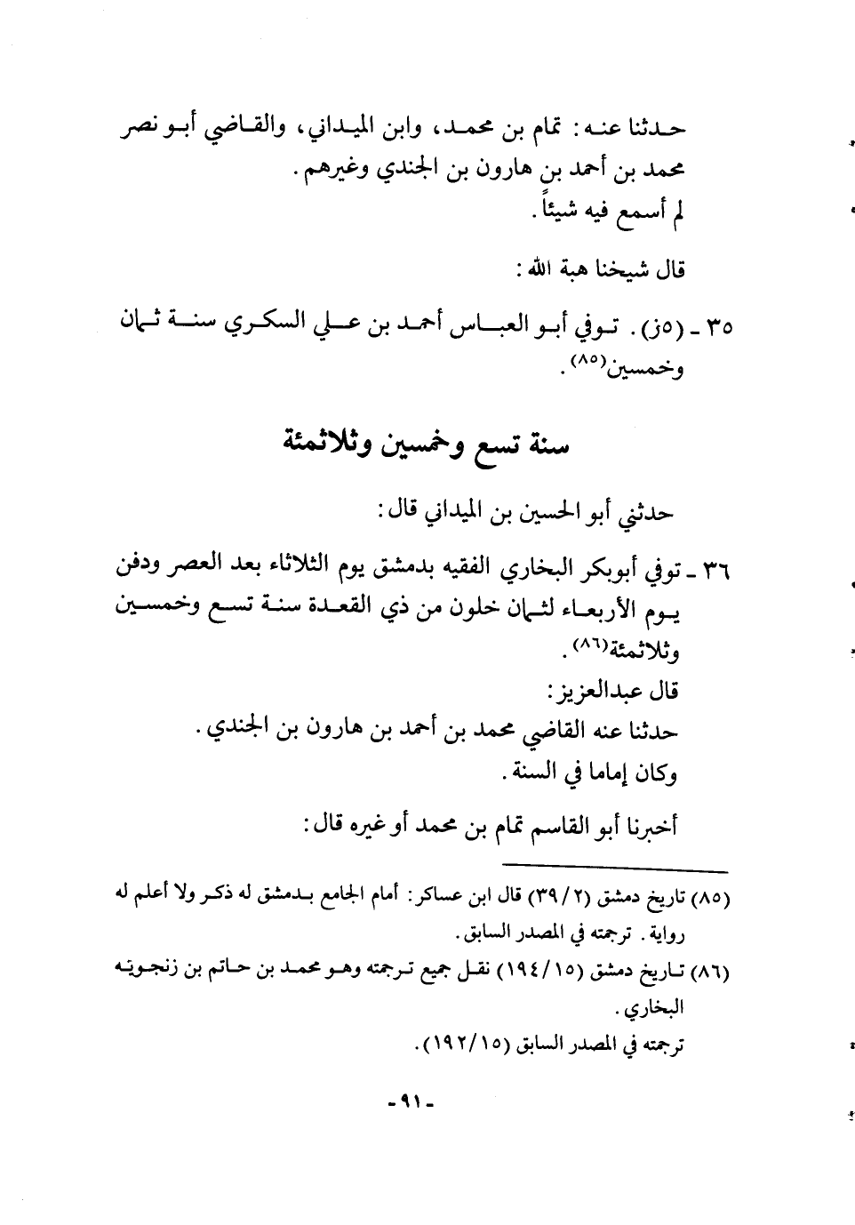 36 - توفّي أَبُو بكر البُخَارِيّ الْفَقِيه بِدِمَشْق يَوْم الثُّلَاثَاء بعد الْعَصْر وَدفن يَوْم الْأَرْبَعَاء لثمان خلون من ذِي الْقعدَة سنة تسع وَخمسين وثلاثمئة