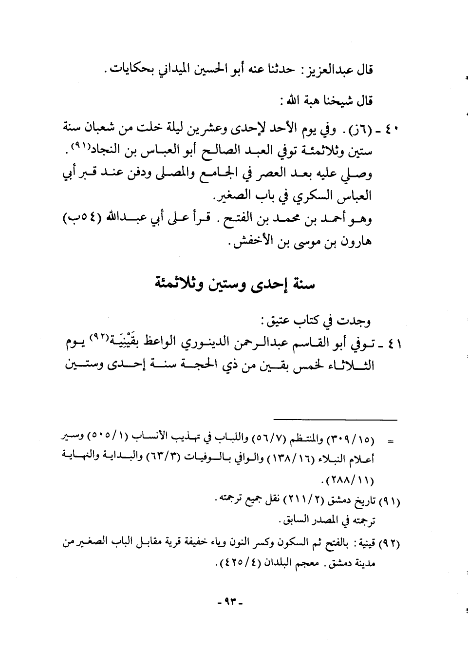 40 - (6 ز) وَفِي يَوْم الْأَحَد لإحدى وَعشْرين لَيْلَة خلت من شعْبَان سنة سِتِّينَ وثلاثمئة توفّي العَبْد الصَّالح أَبُو الْعَبَّاس بن النجاد