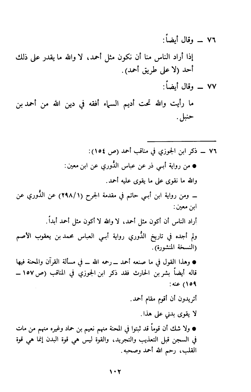 إِذا أَرَادَ النَّاس منا أَن نَكُون مثل أَحْمد، لَا وَالله مَا يقدر على ذَلِك أحد (لَا على طَرِيق أَحْمد) .