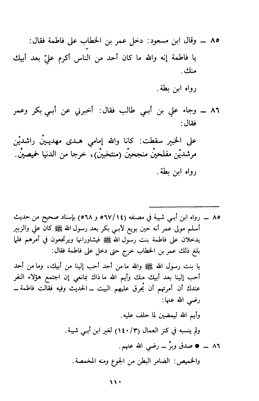 86 - وَجَاء عَليّ بن أبي طَالب فَقَالَ: أَخْبرنِي عَن أبي بكر وَعمر فَقَالَ: