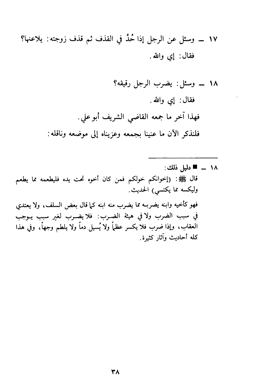 18 - وَسُئِلَ: يضْرب الرجل رَقِيقه؟