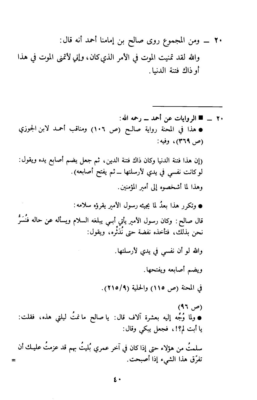 20 - وَمن الْمَجْمُوع روى صَالح بن إمامنا أَحْمد أَنه قَالَ: