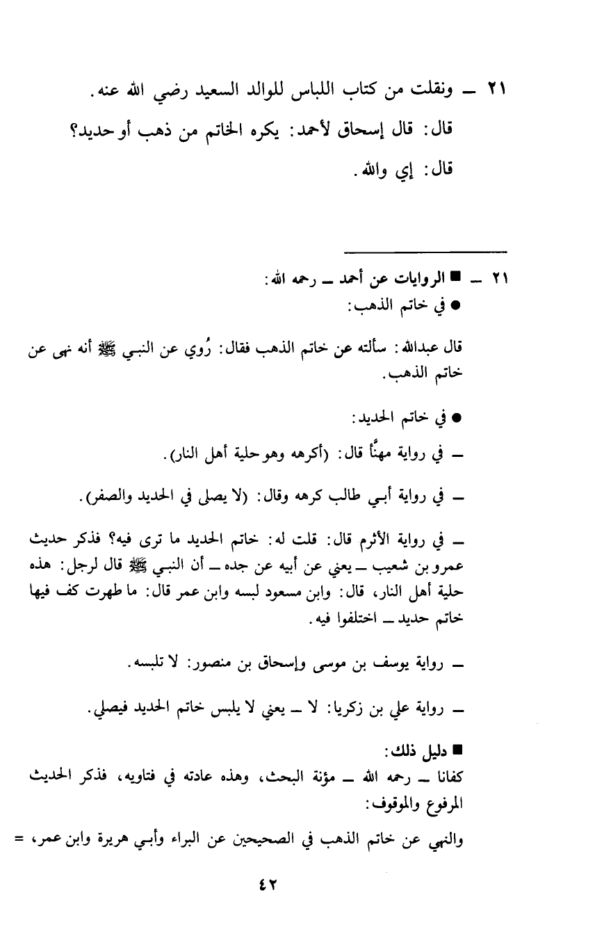 قَالَ: قَالَ إِسْحَاق لِأَحْمَد: يكره الْخَاتم من ذهب أَو حَدِيد؟