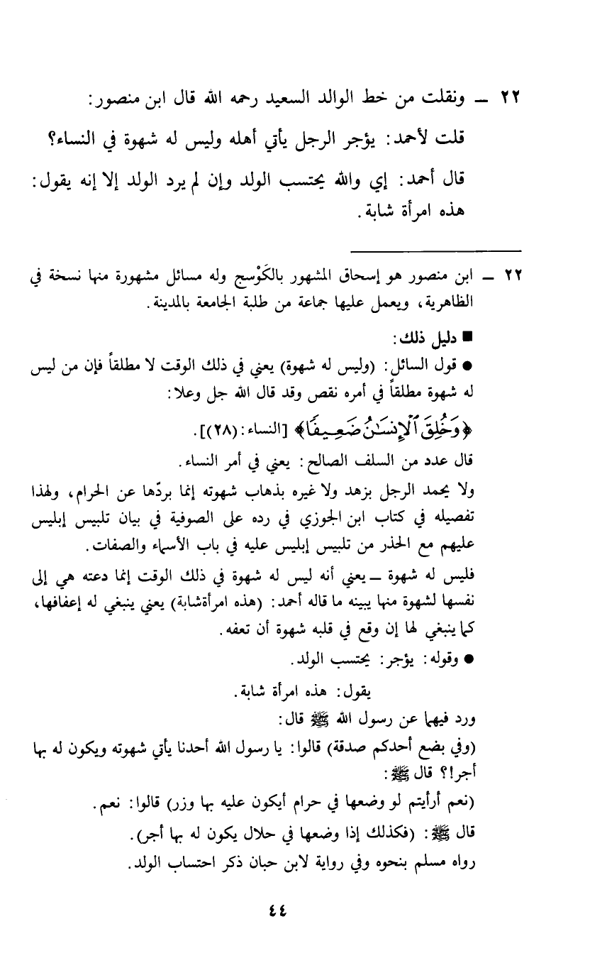 22 - ونقلت من خطّ الْوَالِد السعيد رَحمَه الله قَالَ ابْن مَنْصُور: