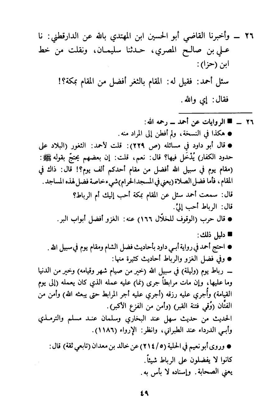 سُئِلَ أَحْمد: فَقيل لَهُ: الْمقَام بالثغر أفضل من الْمقَام بِمَكَّة؟ !