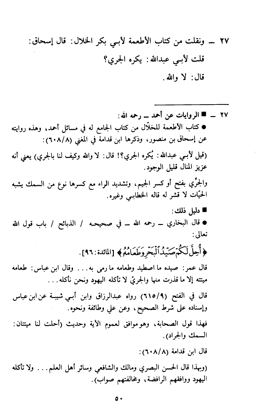 27 - ونقلت من كتاب الْأَطْعِمَة لأبي بكر الْخلال: قَالَ إِسْحَاق:
