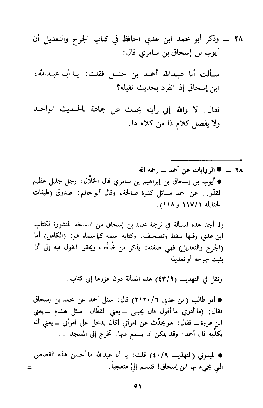 28 - وَذكر أَبُو مُحَمَّد ابْن عدي الْحَافِظ فِي كتاب الْجرْح وَالتَّعْدِيل أَن أَيُّوب بن إِسْحَاق بن سامري قَالَ: