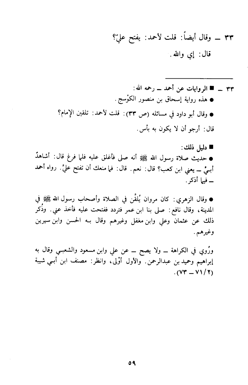33 - وَقَالَ أَيْضا: قلت لِأَحْمَد: يفتح عَليّ؟