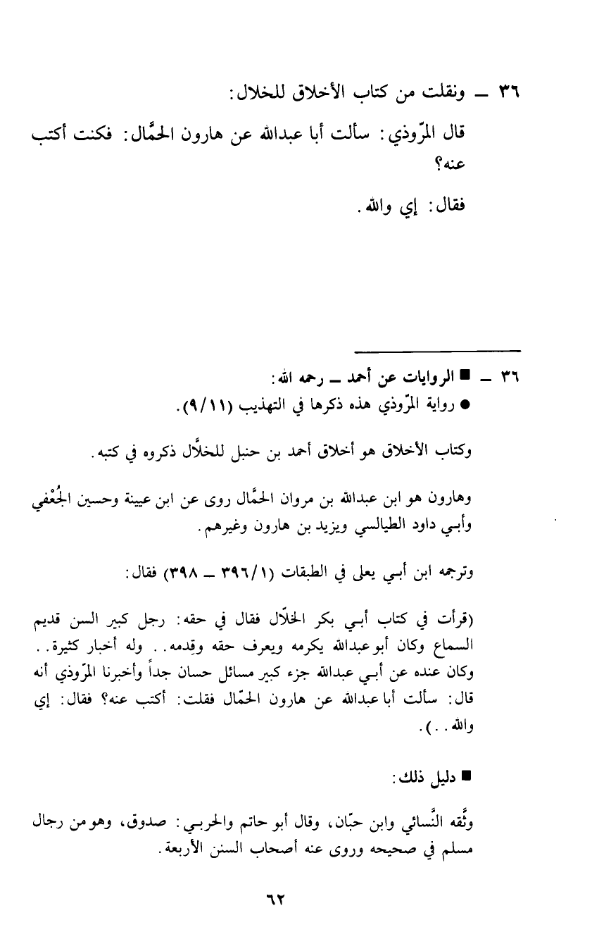 36 - ونقلت من كتاب الْأَخْلَاق للخلال: