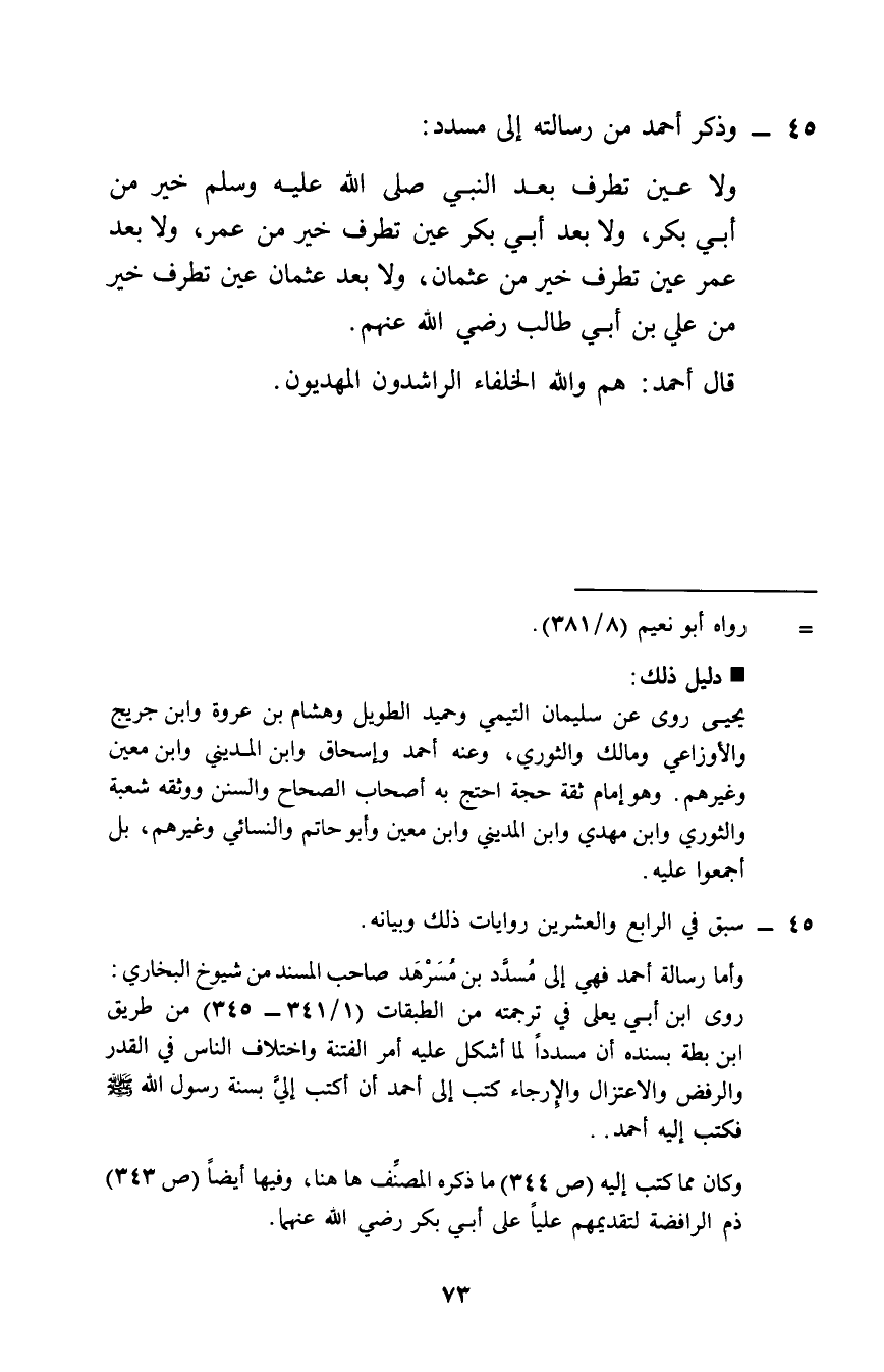 45 - وَذكر أَحْمد من رسَالَته إِلَى مُسَدّد: