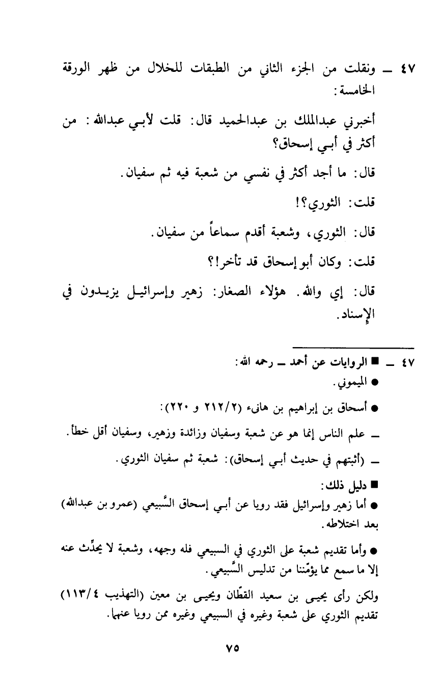 47 - ونقلت من الْجُزْء الثَّانِي من الطَّبَقَات للخلال من ظهر الورقة الْخَامِسَة: