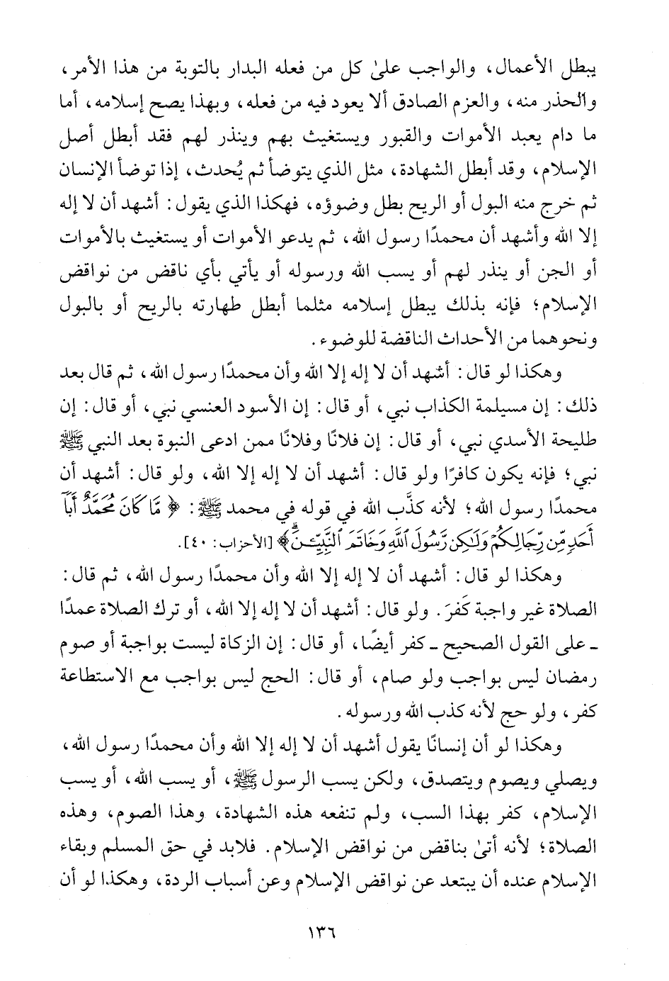 تحريم الزنا أو جحد تحريم السرقة أو جحد تحريم اللواط أو ما أشبه ذلك؛ فإن من جحد هذه الأمور أو شيئا منها كفر إجماعا ولو أنه يصلي ويصوم، ولو أنه يقول لا إله إلا الله؛ لأن هذه النواقض تفسد عليه دينه، وتجعله بريئا من الإسلام بهذه النواقض لكونه بجحدها أو شيء منها يعتبر مكذبا لله سبحانه ولرسوله صلى الله عليه وسلم.