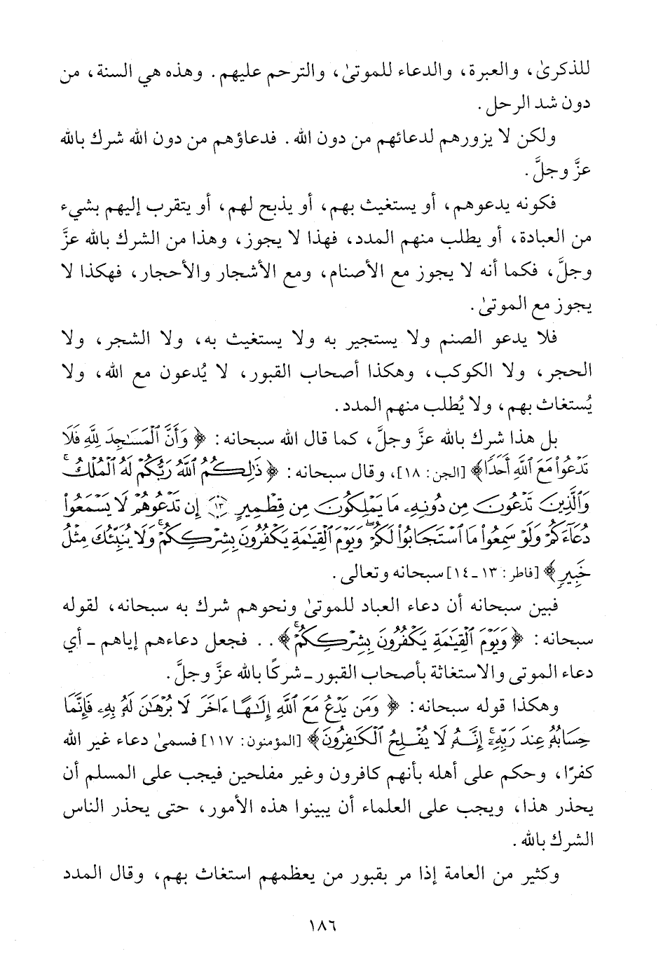الجواب: الذي يبيح دعاء الأموات يكون مشركا؛ فالذي يبيح أن يدعى الميت، وأن يطلب منه المدد يعتبر مشركا، ولا يصلى خلفه ولا خلف من يعمل عمله، ولا خلف من يرضى عمله أيضا، بل هذا من الشرك الأكبر، ومن عمل الجاهلية، من مثل عمل أبي جهل وغيره من المشركين؛ لأن الله يقول: {فَلَا تَدْعُوا مَعَ اللَّهِ أَحَدًا} (1) [الجن: 18] ويقول سجانه: {وَلَا تَدْعُ مِنْ دُونِ اللَّهِ مَا لَا يَنْفَعُكَ وَلَا يَضُرُّكَ فَإِنْ فَعَلْتَ فَإِنَّكَ إِذًا مِنَ الظَّالِمِينَ} (2) [يونس: 106] يعني من المشركين. ويقول الله عز وجل: {ذَلِكُمُ اللَّهُ رَبُّكُمْ لَهُ الْمُلْكُ وَالَّذِينَ تَدْعُونَ مِنْ دُونِهِ مَا يَمْلِكُونَ مِنْ قِطْمِيرٍ} (3) {إِنْ تَدْعُوهُمْ لَا يَسْمَعُوا دُعَاءَكُمْ وَلَوْ سَمِعُوا مَا اسْتَجَابُوا لَكُمْ وَيَوْمَ الْقِيَامَةِ يَكْفُرُونَ بِشِرْكِكُمْ} (4) [فاطر 13، 14] سمى دعاءهم إياهم شركا بالله، وقال عز وجل: {وَمَنْ يَدْعُ مَعَ اللَّهِ إِلَهًا آخَرَ لَا بُرْهَانَ لَهُ بِهِ فَإِنَّمَا حِسَابُهُ عِنْدَ رَبِّهِ إِنَّهُ لَا يُفْلِحُ الْكَافِرُونَ} (5) [المؤمنون: 117] وهكذا من يدعو الأصنام أو الأحجار أو الكواكب أو الأشجار أو الجن، ويستغيث بها، أو ينذر لها يسمى مشركا، فلا يصلى عليه، ولا يصلى خلفه، ولا يتخذ صاحبا بل يبغض في الله، ويعادى في الله سبحانه وتعالى، ولكن ينصح ويوجه ويعلم لعل الله أن يهديه.