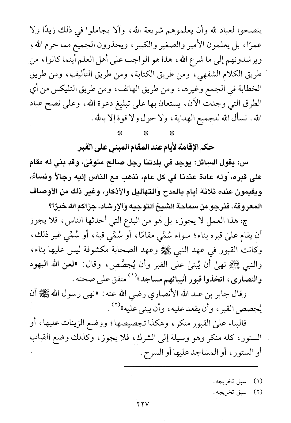 هذا شأن المشركين يعبدون الأصنام والأشجار والأحجار والأولياء والأنبياء، وبهم يستغيثون، ولهم ينذرون، وإليهم يتقربون بالذبائح، هذا هو الشرك الأكبر، وهذا هو الذي أنكرته الرسل، وأنكره أتباعهم من دعاة الحق، وقال الله سبحانه في ذلك: {وَلَوْ أَشْرَكُوا لَحَبِطَ عَنْهُمْ مَا كَانُوا يَعْمَلُونَ} (3) [الأنعام: 88] .