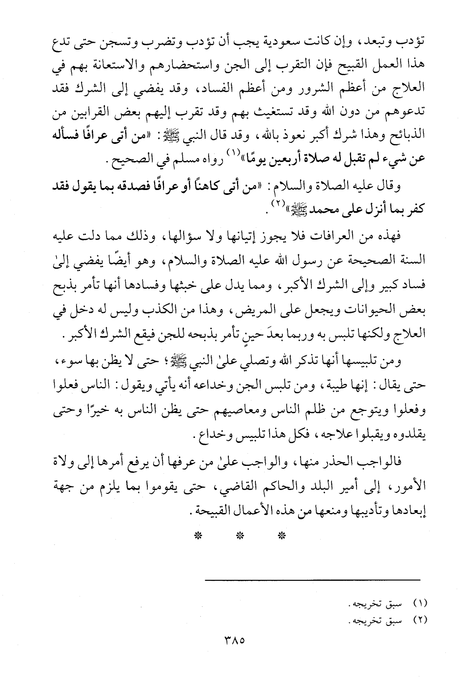 والصلاة خلف الإمام الذي يقول هذا: صحيحة. لكن ينبغي أن يعلم ويوجه إلى الخير، فإن عرف الحق وامتثل وتاب إلى الله من ذلك وإلا فالواجب أن يبدل بغيره، والواجب على المسئولين أن يلتمسوا إماما أصلح منه للمسجد حتى لا يغر الناس، وهكذا إذا كان يتعاطى كتابة الحجب وهي التمائم فهذا أيضا منكر، والرسول صلى الله عليه وسلم أمر بقطع التمائم وقال: «من تعلق تميمة فلا أتم الله له ومن تعلق ودعة فلا ودع الله له» (2) وأخبر أنها شرك فلا يجوز كتابة التمائم لا من العظام، ولا من الخرز، ولا من الطلاسم، ولا من غير ذلك.