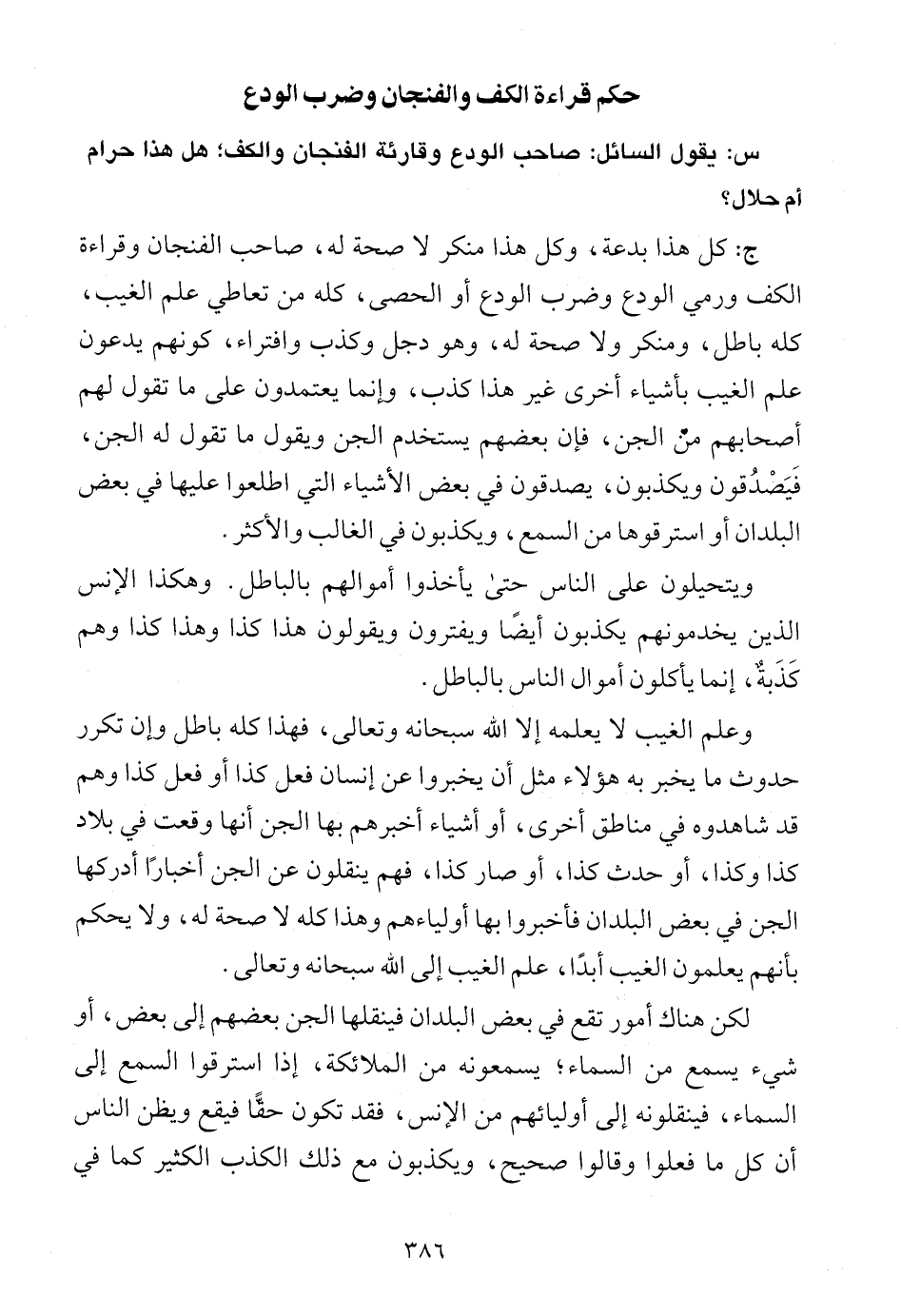 وأما البخور فشيء آخر، فقد تعالج بعض الأمراض بالبخور، ولكن بعض من يدعي الطب قد يتظاهر بأشياء وعنده أشياء أخرى، قد يتظاهر بالتمائم أو بالبخور وهو يتعاطى خدمة الجن، وسؤال الجن، ودعوى علم الغيب بواسطة الجن، ومثل هذا خطره عظيم.