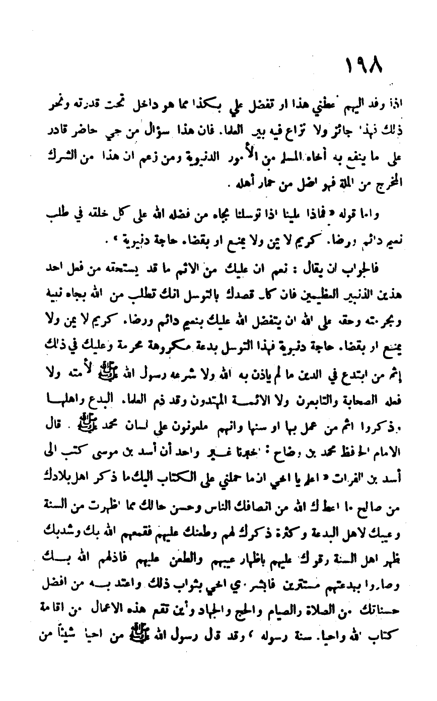 فالجواب أن يقال: نعم إن عليك من الإثم ما قد يستحقه من فعل أحد هذين الذنبين العظيمين فإن كان قصدك بالتوسل أنك تطلب من الله بجاه نبيه وبحرمته وحقه على الله أن يتفضل الله عليك بنعيم دائم ورضاء كريم لا يمن ولا يمنع أو بقضاء حاجة دنيوية فهذا التوسل بدعة مكروهة محرمة وعليك في ذلك إثم من ابتدع في الدين ما لم يأذن به الله ولا شرعه رسول الله –صلى الله عليه وسلم- لأمته ولا فعله الصحابة والتابعون ولا الأئمة المهتدون وقد ذم العلماء البدع وأهلها وذكروا إثم من عمل بها أو سنها وأنهم ملعونون على لسان محمد –صلى الله عليه وسلم- قال الإمام الحافظ محمد بن وضاح: أخبرنا غير واحد أن سد بن موسى كتب إلى أسد بن الفرات: "اعلم يا أخي أن ما حملني على الكتاب إليك ما ذكر أهل بلادك من صالح ما أعطاك الله من إنصافك الناس وحسن حالك مما أظهرت من السنة وعيبك لأهل البدع وكثرة ذكرك لهم وطعنك عليهم فقمعهم الله بك وشد بك ظهر أهل السنة وقواك عليهم عليهم بإظهار عيبهم والطعن عليهم فأذلهم الله بك وصاروا ببدعتهم مستترين فأبشر يا أخي بثواب ذلك واعتد به من أفضل حسناتك من الصلاة والصيام والحج والجهاد وأين تقع هذه الأعمال من إقامة كتاب الله وإحياء سنة رسوله، وقد قال رسول الله –صلى الله عليه وسلم-: " من أحيا شيئاً من
